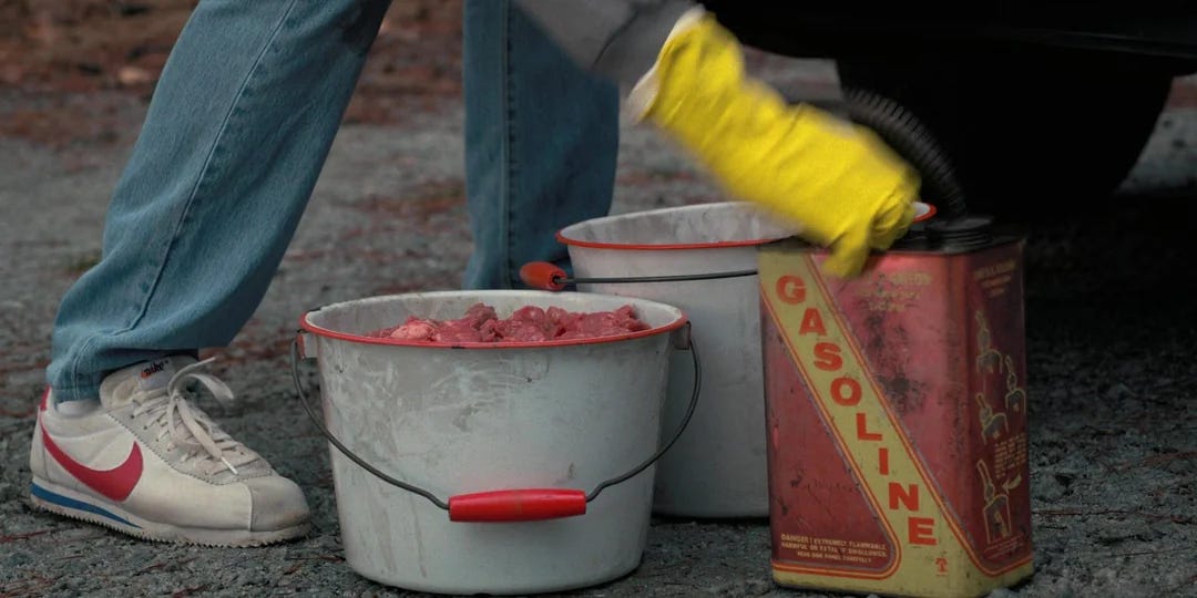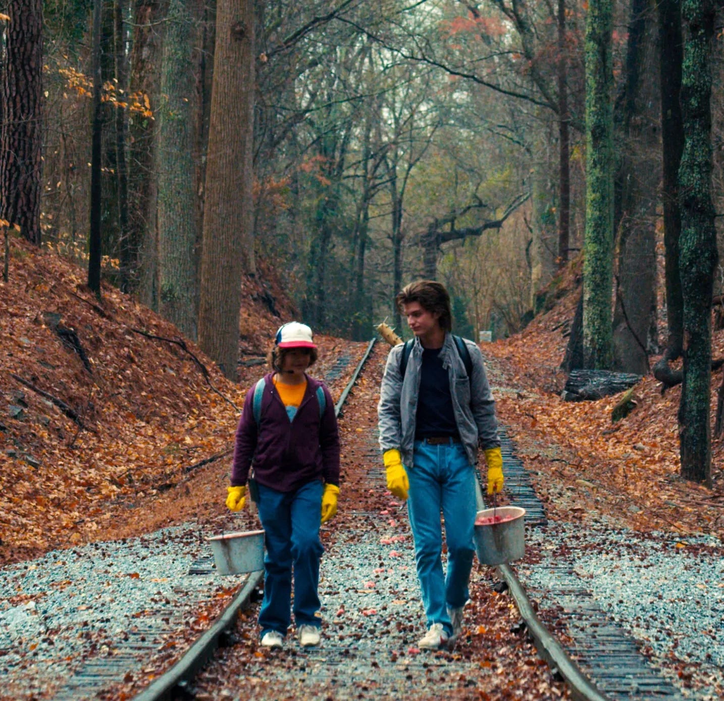 Played by Joe Keery in STRANGER THINGS, Steve is basically like if the most beautiful person you’ve ever seen was also an embarrassing uncle who was also a single mother, and then in their free time they work the oddest jobs they can find in town. As a character, his character growth is really something special. When we first meet him, Steve is textbook ’80s high-school royalty: perfect hair, crisp polos, clean jeans, and an obvious tell that he’s dressing for status. Everything about his look is controlled and intentional, like he’s curating how the world sees him. He’s also viewed as a bully in Season 1 (I kinda disagree, but that is another story). Still, as we spend more time with him, something interesting happens: the ego fades, empathy kicks in, and without trying to, he accidentally becomes the emotional backbone of the group. His wardrobe follows that same shift. The polish drops away. His clothes start to feel softer, looser, lived-in, like they’ve actually been worn through long days and worse nights. His overly preppy pieces quietly exit the frame, replaced by soft details, denim that looks broken-in, and t-shirts that feel instinctive rather than styled. And sneakers, particularly Nike silhouettes rooted in real cultural history, become central to how we read him.